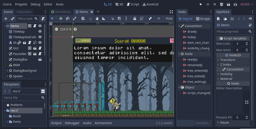 More than a videogame I would call it a “playable demo”, but I am happy enough with the result. It required me about two months of “night time” work in order to create it. During this time I had also to learn how to create all the stuff. In fact, before than this, I have never created pixel art, or never used Godot Engine. I admit I have some experience in Unity 3D and Blender coming from my M.Sc., but that’s it.